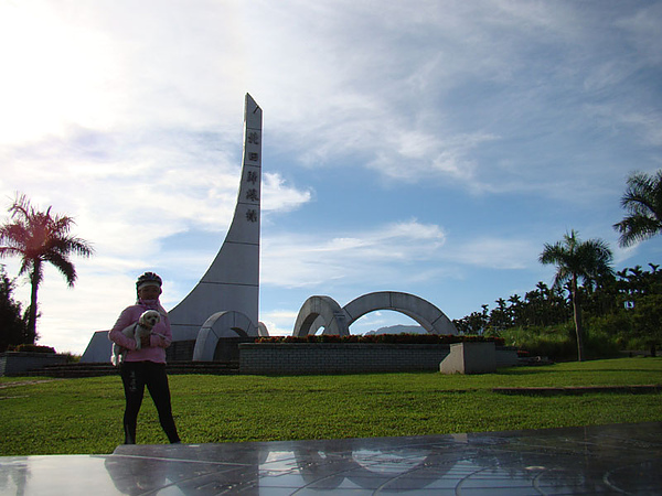 一連1公里長坡後, 終於 看到北迴歸線了, 一大早 沒人來 只好我跟熊熊自拍囉!! 旭日東升 背光, 沒辨法