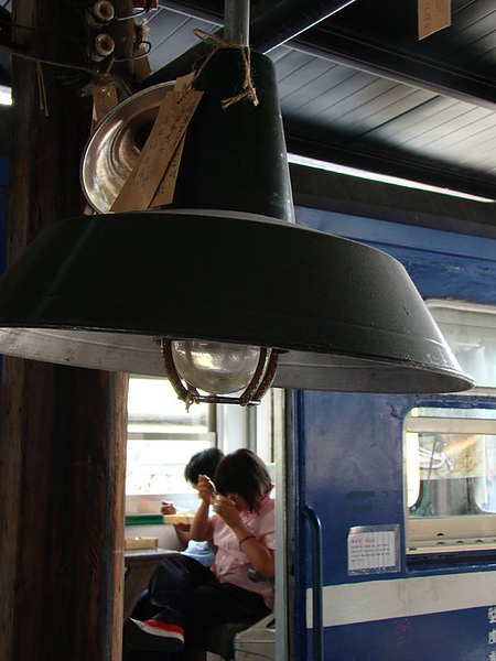 外頭有車廂雅座 可惜沒冷氣, 熱死了, 不過, 一堆高中生在車廂裡吃飯