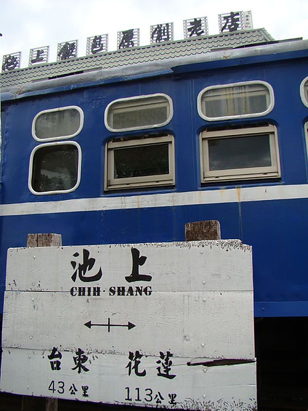 進池上市區之前, 到派出所裝水時, 問警察大哥哪家便當好吃? 說是 這家老店, 門前有二節車廂, 挺有特色的
