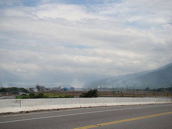 去關山的路上, 燒稻草的餘煙環燒, 讓整條路有點迷霧