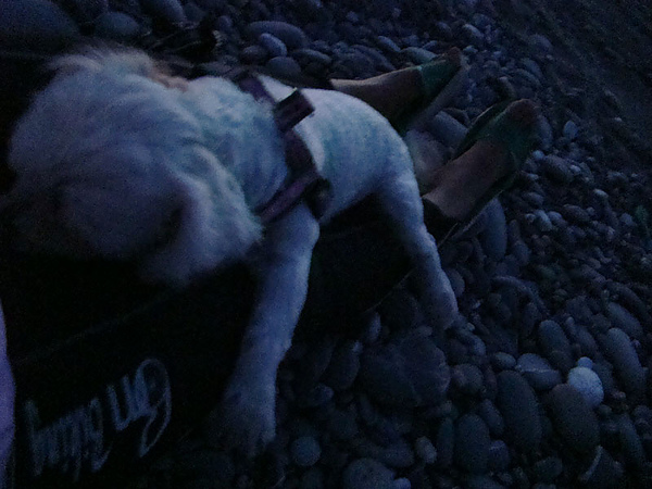 他的帳蓬一晚上被海風吹得亂七八糟, 根本沒睡~~ 可憐
