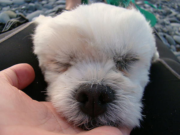 熊熊的臉都是沙, 可憐, 眼睛都張不開