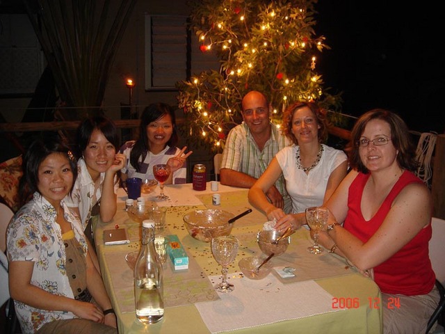 「照片說明: 這天是聖誕節晚上, 二個日本寄宿學生, 我, home pa & ma,還有他們的朋友Sara, 一起吃聖誕節晚餐 」